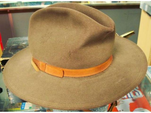 An execllent example of a US army model 1889 enlisted Prarie hat with a snowflake pattern venting. Baker and McKenny, New York as makers on sweatband.. Original silk cap band. Leather strap looks to be newer.
