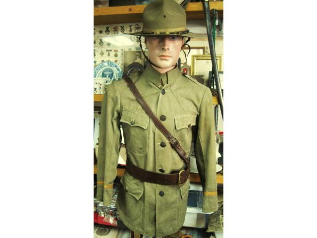 Very scarce greenish tan tunic for an officer in the US Phillipines Coastal Artillery circa 1900.. Complete with sam brown belt. Comes with a wonderful Stetson hat that was purchased at the Fort William McKinley Post Exchange and is so stamped in gold on the sweatband. Complete with bullion officer cap cords. Probably the nicest Stetson I've seen!