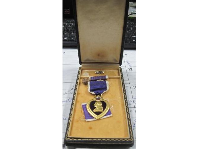 Unengraved but serial numbered (30101778) Purple Heart medal awarded to Shinieh Yamada who served with the 100 Infantry Bat., 442 Infantry Regt.  Medal was awarded at the 15th evacuation hospital on 1 December, 1943..  Early lacquered enamel construction.  Very scarce award. With paperwork.
