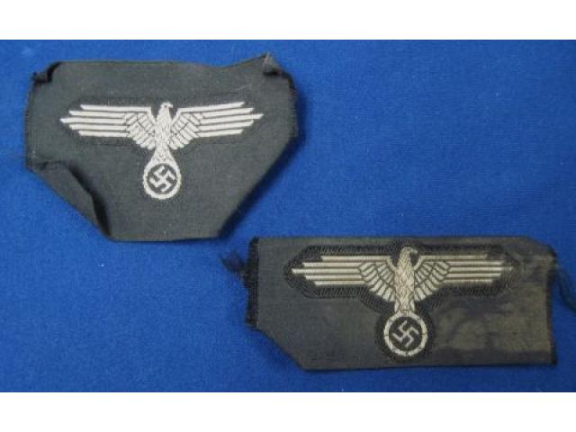 2 examples of the cloth cap/sleeve eagle for the SS. 2 different embroidery eagle styles. Price is for each. Larger one could have been used on the sleeve.
