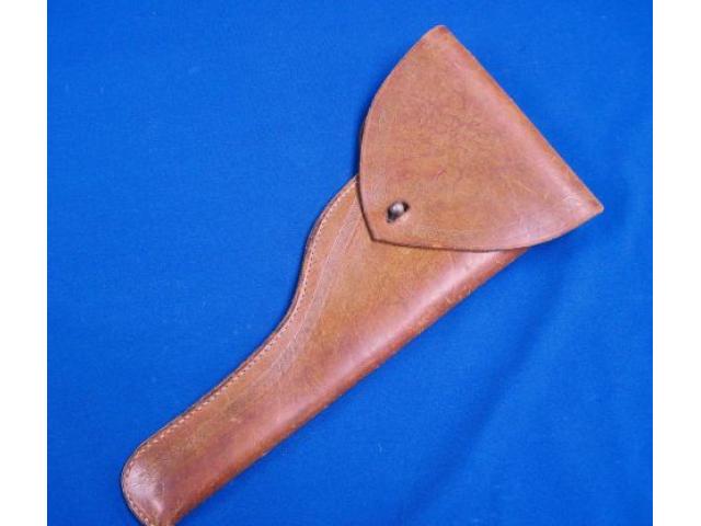 Nice old tooled leather holster for a long barrel revolver like a Colt or Remington.  letters "RHB 13090" on rear belt loop.
